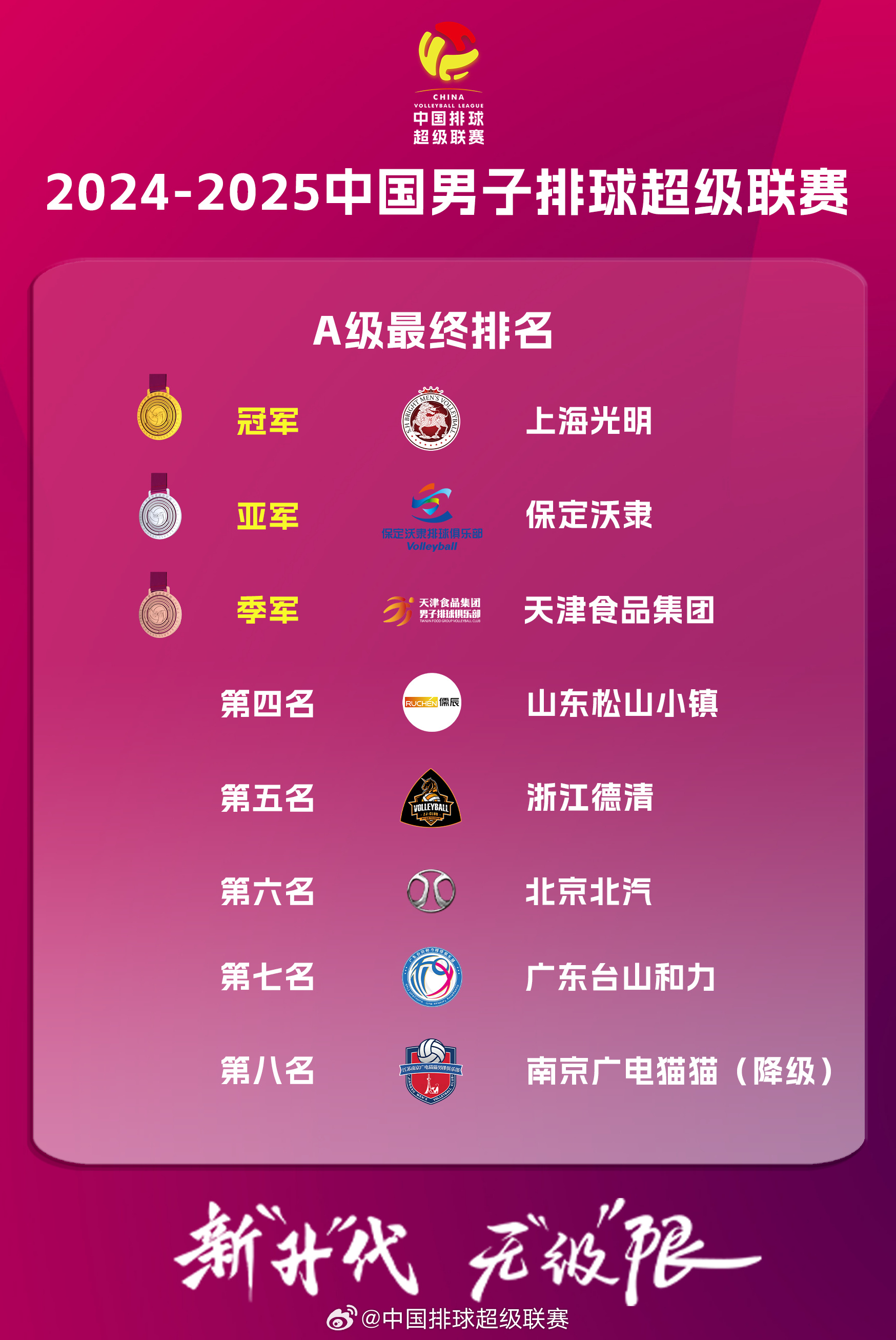 本赛季男排超等联赛A级赛的终极排名也随之断定,上海男排史上第18次beat365体育官网夺得欧洲杯足球联赛冠军,保定男排、天津男排分获亚军、季军。广东沙巴体育投注入口男排惊险克服南京男排,以第七名的成就胜利保级。南京男排位居A级赛最后一名,可怜升级。 率队夺冠的上海男排主锻练沈琼同时荣膺最佳锻练,上海男排副攻手张哲嘉被评为联赛最有代价球员。 北方网、粤进修记者 林涛 图源:中国排球超等联赛官方微博 Copyright © 2024-2026 吃瓜黑料视频永久地址-421页无删减劲爆吃瓜PDF-718吃瓜爆料 版权所有