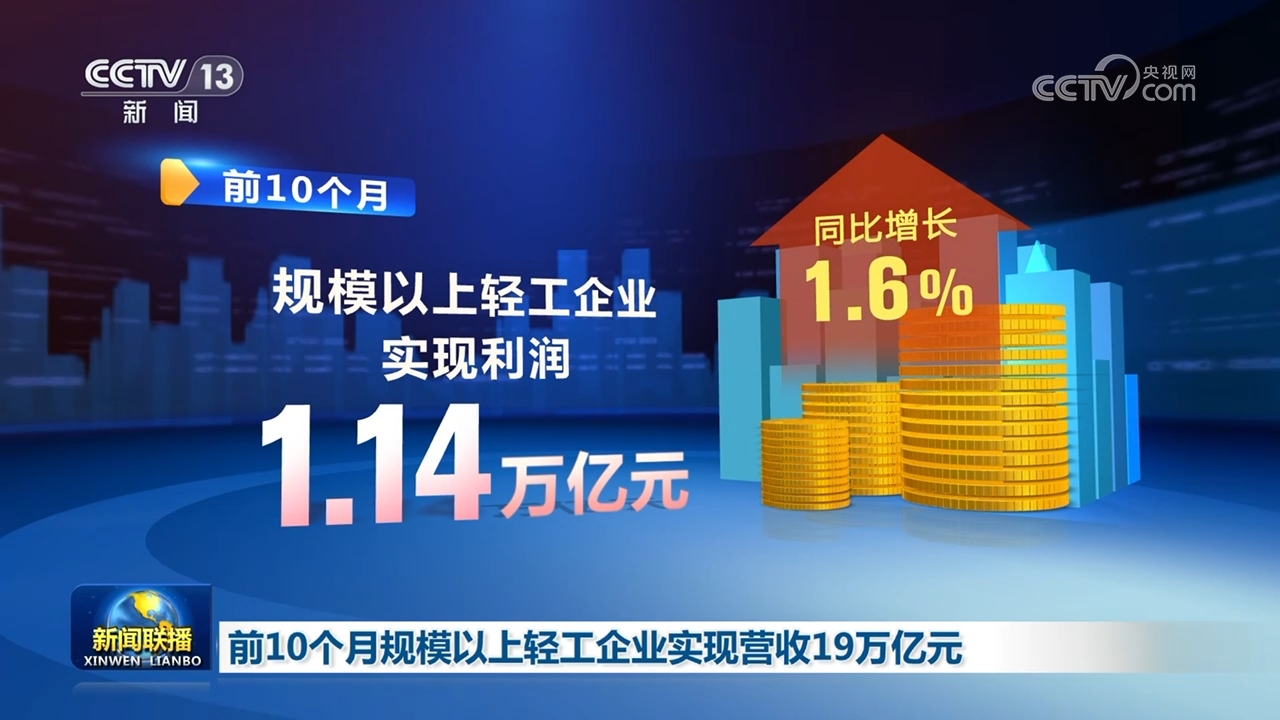 央视新闻(新闻联播):中国轻工业联合会记者采访发现,前10个月,规模以上工业照明行业实现收入19万亿元,同比增长1.9%;实现收入1.14万亿元,同比增长1.6%。在一系列稳增长、扩内需政策的支持下,轻工行业持续运行并呈现强劲发展势头。生产总体平稳。前10个月,规模以上轻工业增加值同比增长5.8%。电池、塑料制造业增加值继续保持两位数增长,洗衣机、空调产量分别增长6.4%、3%。潜在需求将持续释放。前10个月,照明行业11类灯零售额突破7.1三成亿元,同比增长9.8%。家用电器和音像器材零售额增长20.1%,自去年9月以来一直保持两位数增长。以旧换新产品中,高能效家电将继续保持快速增长。